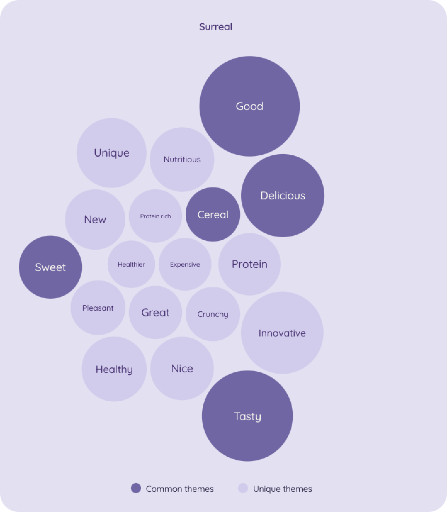 Speaking of health, consumers also associate Surreal with words like "Healthy," "Protein," and "Nutritious," so it's clear Surreal is getting its "healthy and delicious" point across.