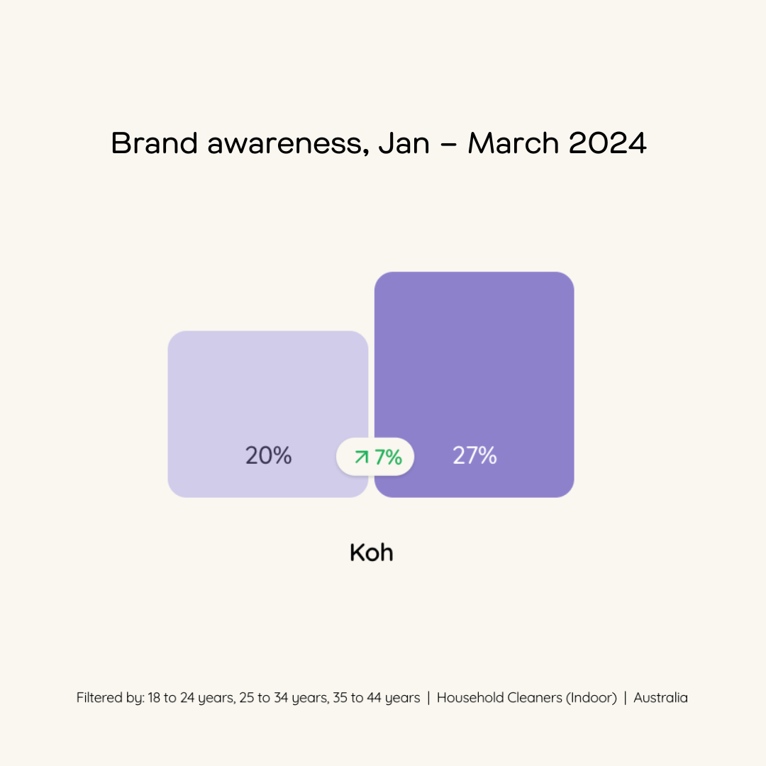 - Koh, known for its sustainable cleaning products, primarily invested in performance marketing. But after recognizing the need for broader brand recognition, the company decided to expand into traditional advertising channels to boost brand awareness in Australia.