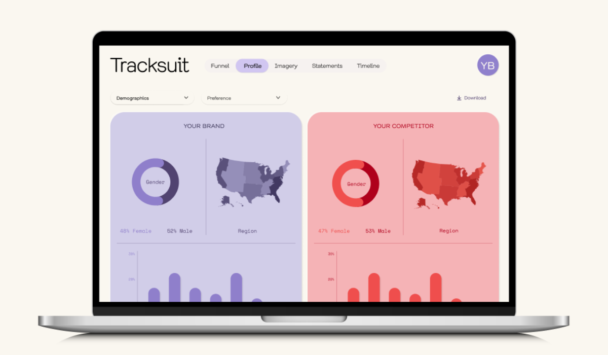Here, we break down the key parts of Tracksuit dashboard that helps marketing leaders track the progress of each feature shared by the world’s most recognizable brands.