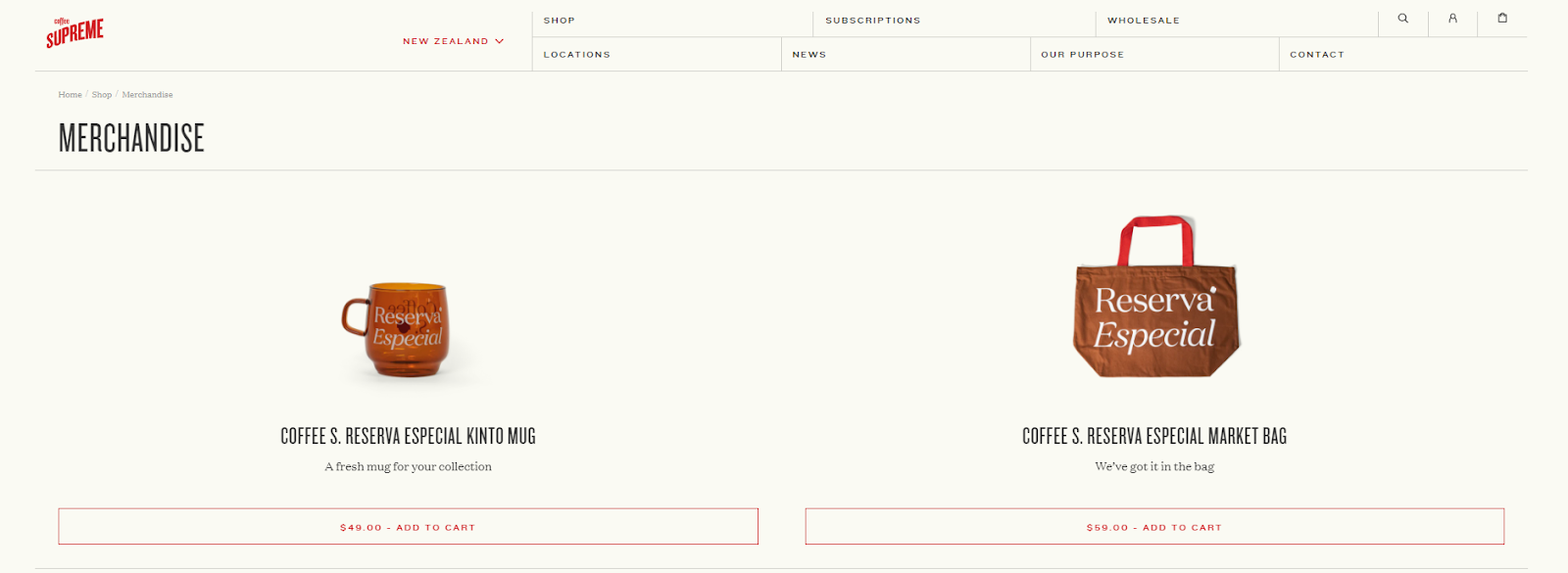Coffee Supreme’s merchandise