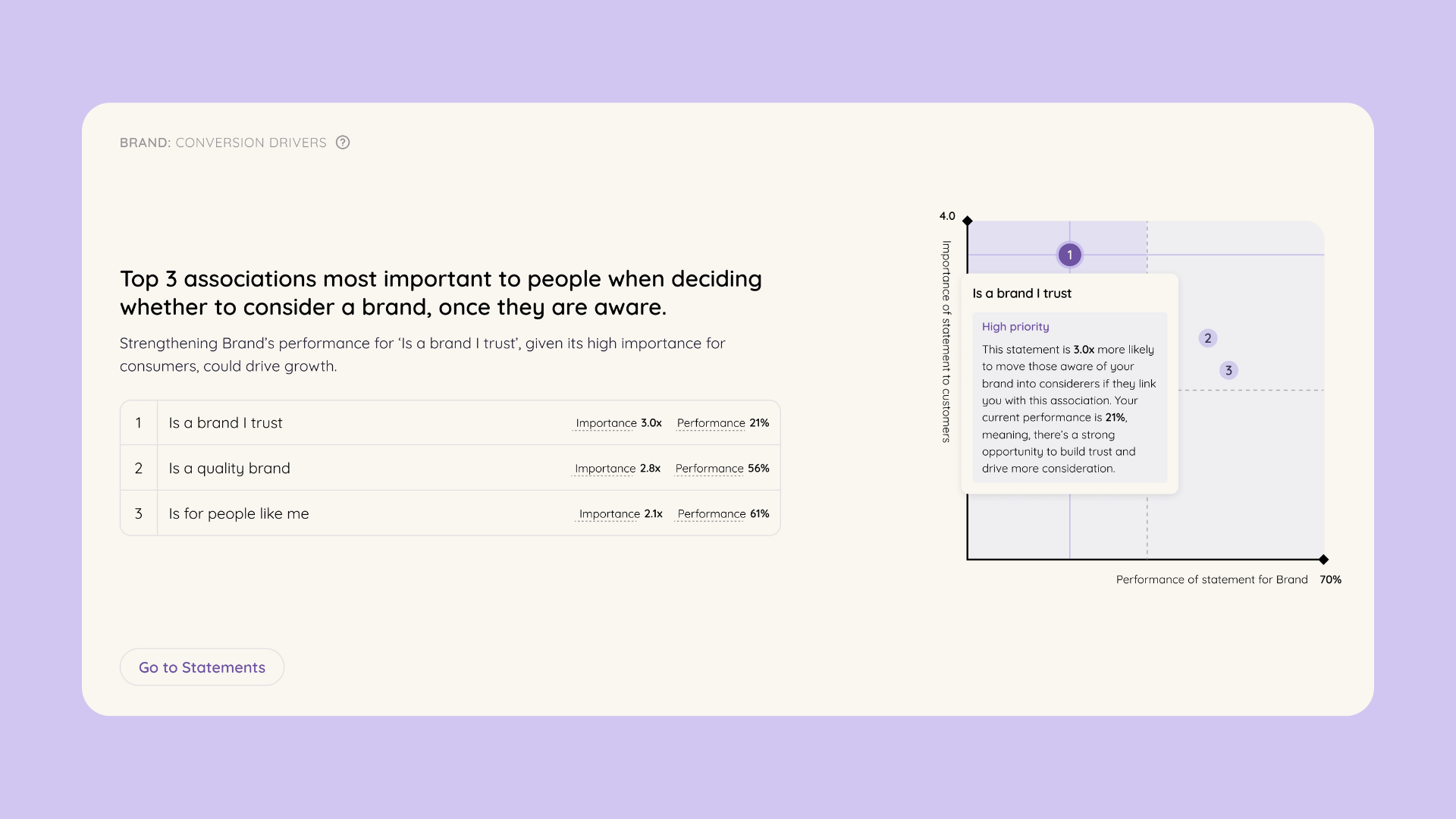 • The brand is the business: Modern, social-media savvy brands often experience quick sugar highs with viral moments. But Tracksuit can be your strategic ally, helping marketers prove and protect that long-term compounding effect brand has on business.