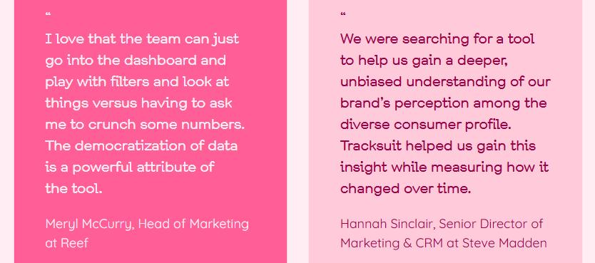 Tracksuit works with over 1,000 brands, including Athletic Brewing Company, Turo, Steve Madden, and The RealReal. We help marketing teams benchmark brand health against competitors and connect perception data to commercial outcomes. That hands-on experience gives us a clear view of where different brand management tools fit and where they fall short.