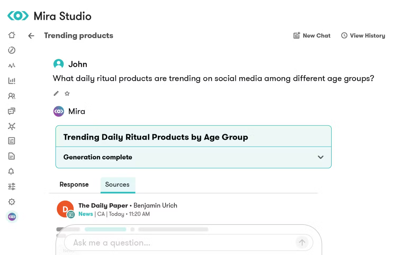 - AI-powered consumer intelligence: Analyzes millions of online conversations to identify trends, sentiment shifts, and emerging topics