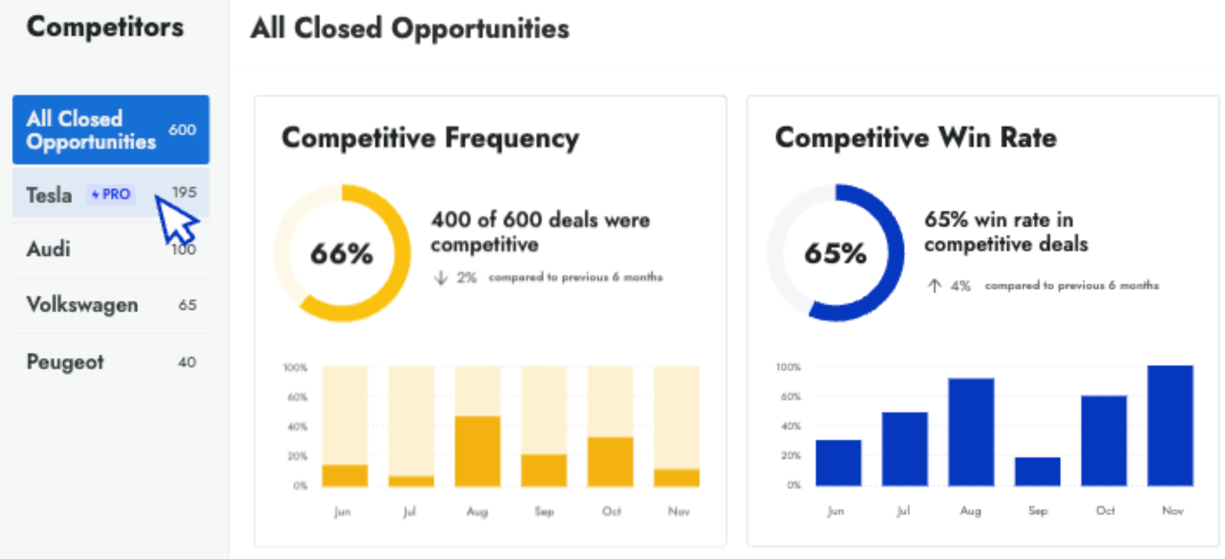• Win/loss analysis: Connects competitive intelligence to deal outcomes