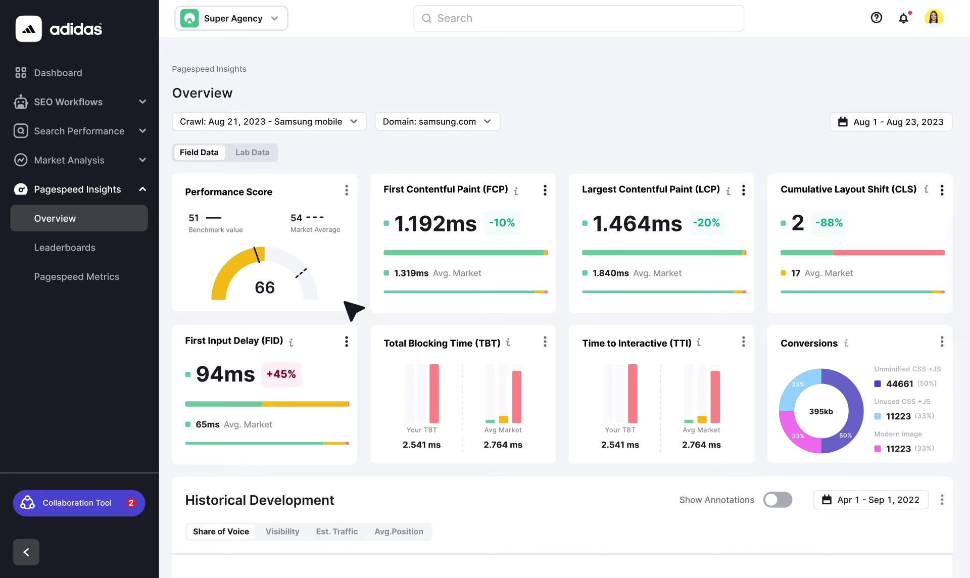 • Market share insights: Industry benchmarks that show your position within your competitive set