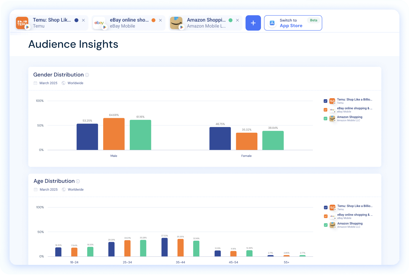 • Segments competitive benchmarks by demographics, geography, and target audience